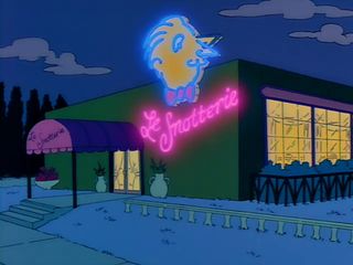 Moe amène Betty au Smotterie, restaurant français de classe tout en emmenant le testeur amoureux qu’il va mettre dans les toilettes. |  |