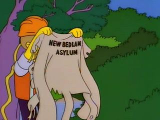 Voilà l’ambulance qui emmène Bart au New Bedlam.