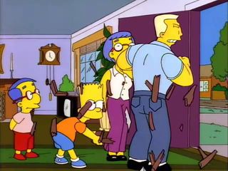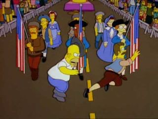 après l'avoir poussé quand ils décident de perturber la parade comme Homer pousse Ned.