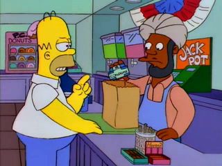 , Homer cache son pétard dans des courses diverses.