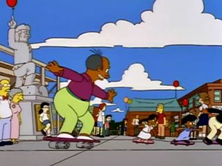 Ce n’est vraiment qu’une bande de copieurs car Apu et Sanjay lancent un Cowabunga en circulant parmi les gens sur des skateboard.