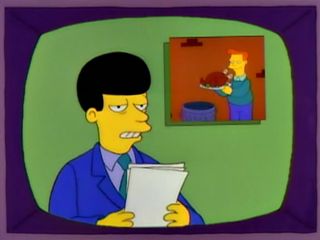 Scott Christian lui dans son émission, nous apprend que le chef Wiggum à fait avorter un hold-up sans le faire exprès.