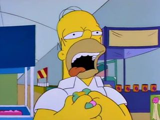 Homer sera malade à cause du jambon et ensuite à cause de deux seaux de crevettes avariées.