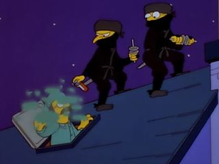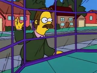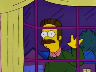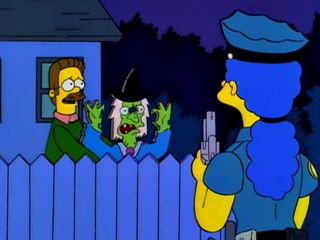 Bart a entendu une femme crier mais c’est probablement Ned qui crie comme une fille quand Lou lui ramène ce qui reste du ficus.