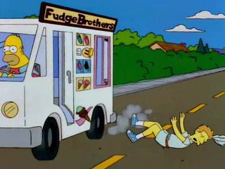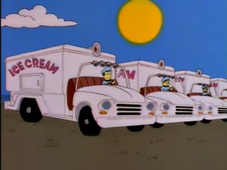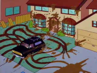 Au volant il y a Bumblebee Man qui essaie de faire tomber la machine infernale de Monty Burns. |  |