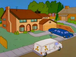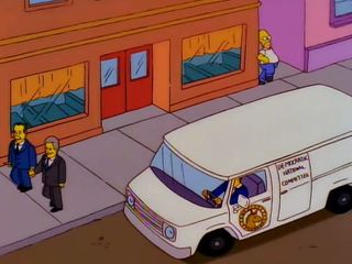 Le van des Services Secrets lorsqu’il escorte la limousine présidentielle qui arrive dans Evergreen Terrace. |  |